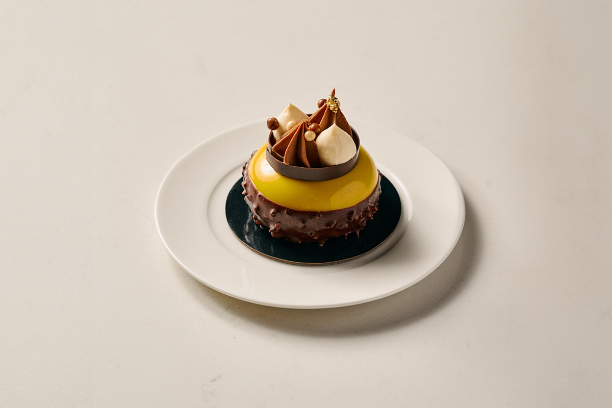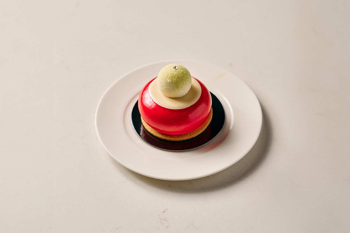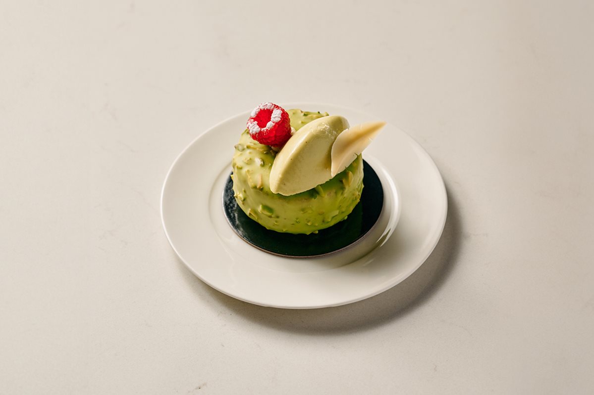Taste the lemon and raspberry tart, made with delicious swiss meringue, raspberry jelly dome, lemon curd and fresh raspberry. Enjoy the coffee & Baileys, with coffee & caramel chocolate, cremeux, soft Baileys caramel, delicate baileys mousse and chocolate crumble. Discover the pistachio and raspberry gateau, a pistachio raspberry tea cake with pistachio chocolate dip, pistachio mousse quenelle as well as white chocolate feather.