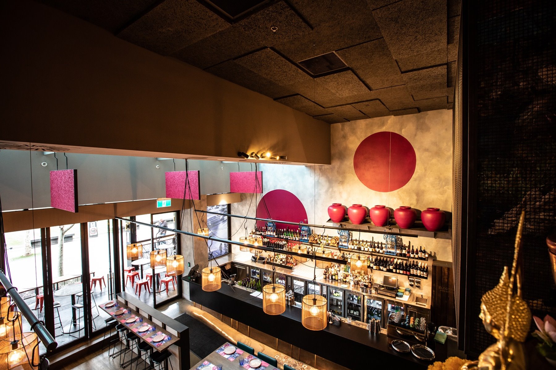Soak up the fresh air, Yarra views and energy of the Riverwalk as you dine on Ging Thai’s iconic outdoor terrace. The perfect choice for up to 45 guests to enjoy a selection of South-East Asian inspired share plates in a gloriously sun-soaked setting. Or, opt for an indoor location from the semi-private floating mezzanine, for up to 26 guests. Enjoy a unique private dining experience with friends or family amongst the colourful surrounds of Ging Thai.