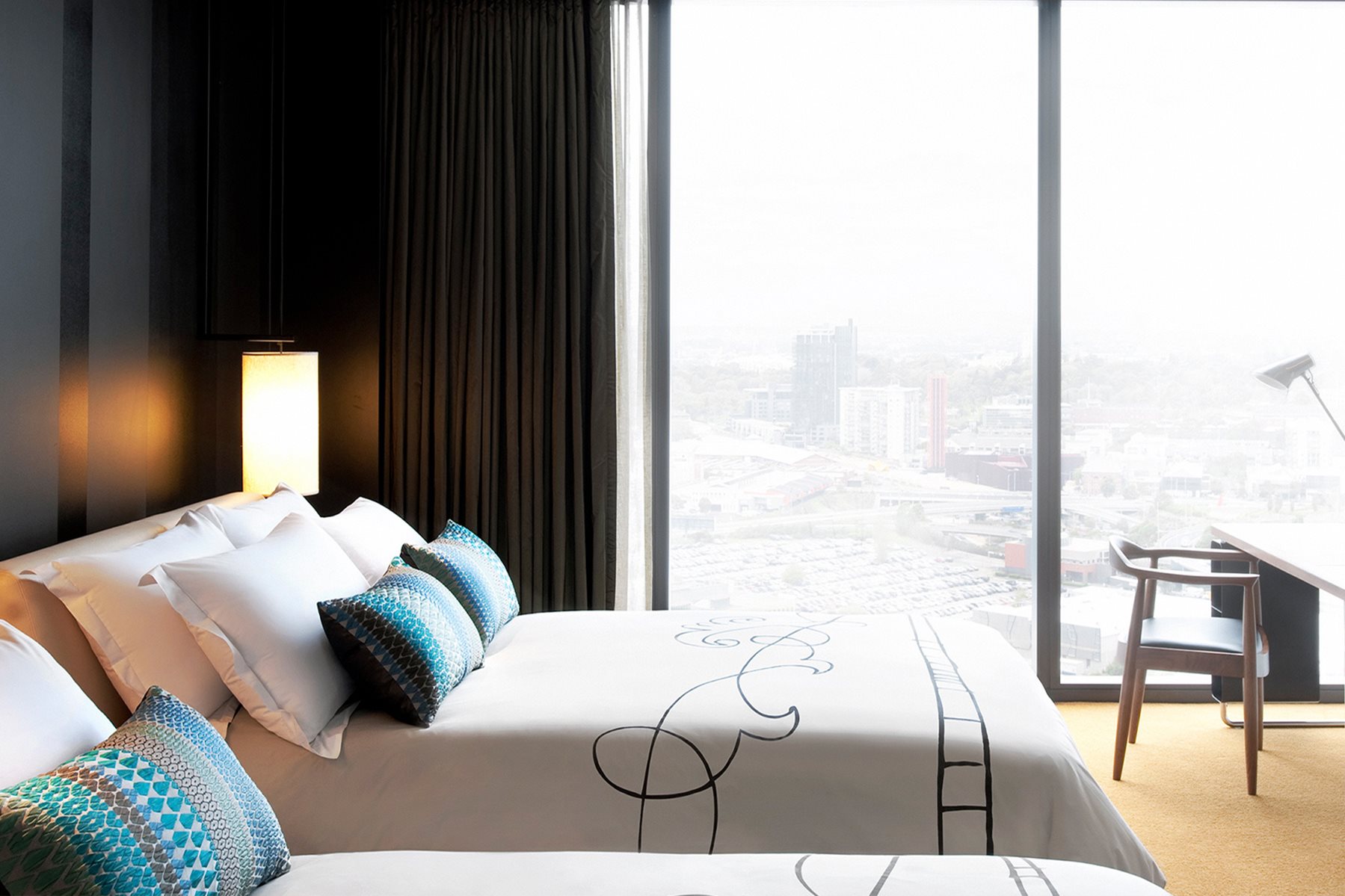 Located on the highest floors, the elevated Luxe Twin rooms feature two comfy beds, desk, floor-to-ceiling windows, bathroom with a privacy screen, fast and free internet, individual climate control and boutique bath amenities.