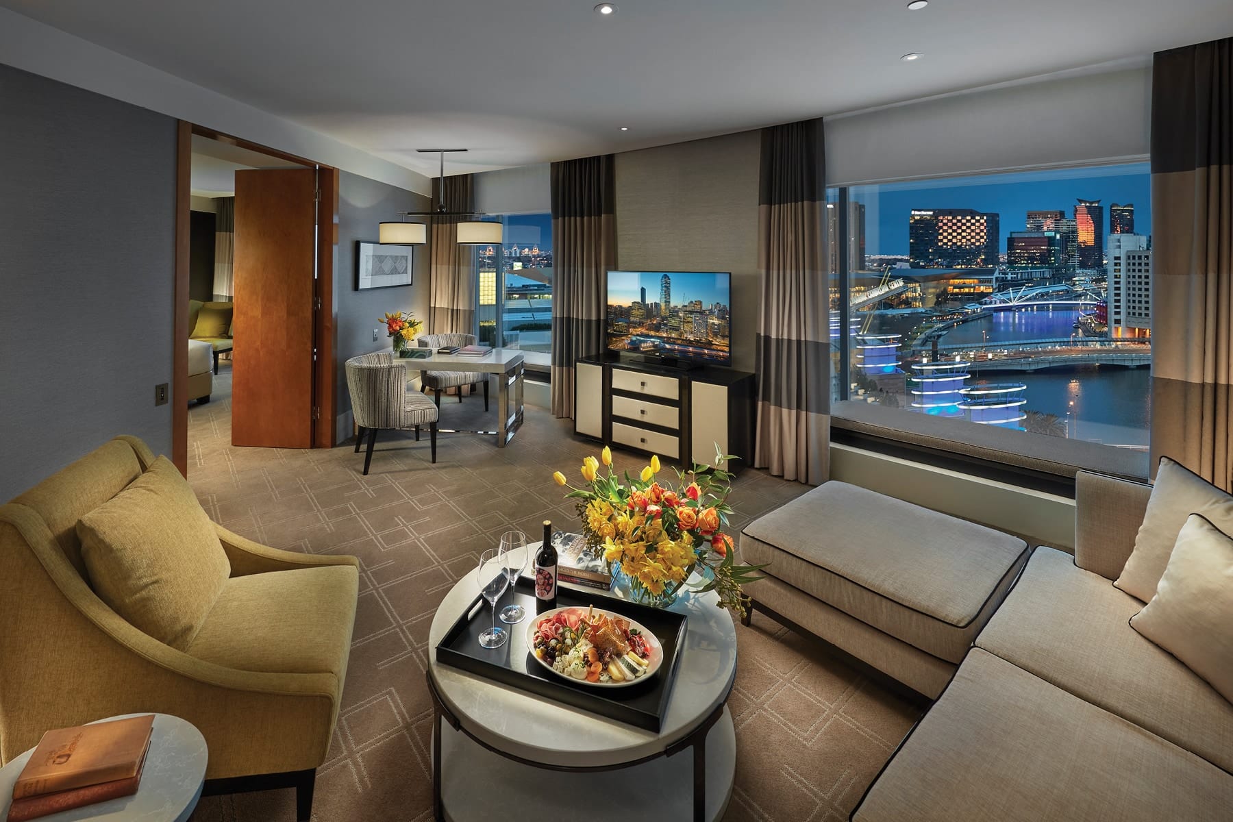 Feel yourself instantly relax from the moment you enter the Crown Towers Executive Club Suite. Revel in the spacious living and dining space that seamlessly flows through to the master bedroom. Lined with marble, your bathroom is fitted with a separate shower, bathtub and double vanities. Enjoy complimentary access to the Crystal Club Lounge with personalised check-in, breakfast, afternoon tea and evening drinks and canapés.
